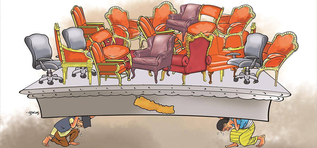 २०७२ सालको संविधानले अकार्यकुशलता, राजनीतिको व्यावसायीकरण र अजङ्गको सङ्घीय संरचनामार्फत राजनीतिक दलका अनपढ कार्यकर्ताहरूका लागि रोजगारी सिर्जना गर्यो। यसले चाहिनेभन्दा धेरै ठूलो सङ्घीय सरकार, धान्नै नसकिने ७ प्रादेशिक सरकार र ७५३ वटा स्थानीय सरकारहरू बनायो। ३३४ सङ्घीय सांसद, ५५० प्रादेशिक सांसद, ३५,२२१ स्थानीय प्रतिनिधिसहित कुल ३६,१०५ तलबी पद छन्।