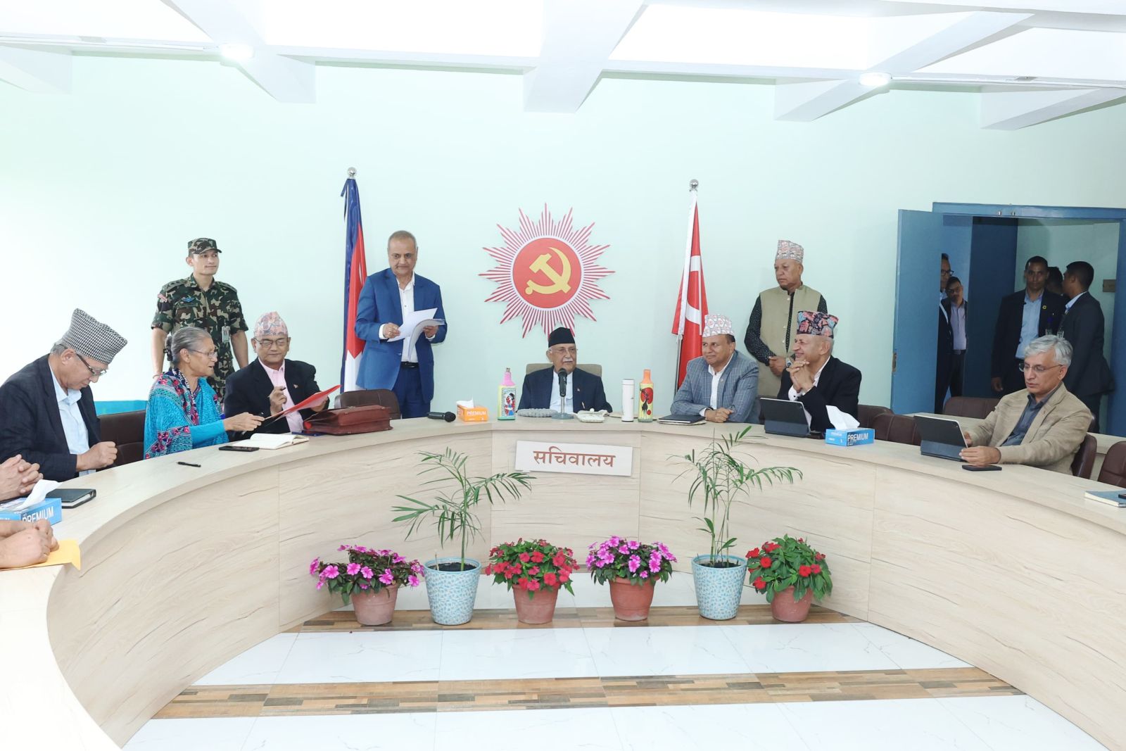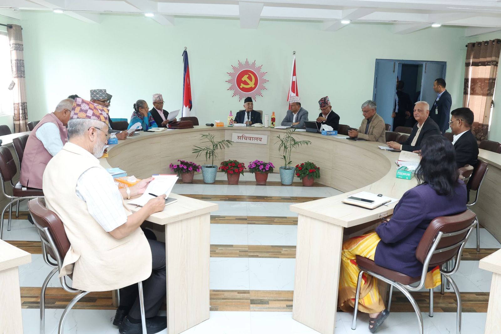 प्रधानमन्त्री एवं पार्टी अध्यक्ष केपी शर्मा ओलीको अध्यक्षतामा बैठक ललितपुरको च्यासलस्थित एमाले मुख्यालयमा बैठक बसिरहेको हो।