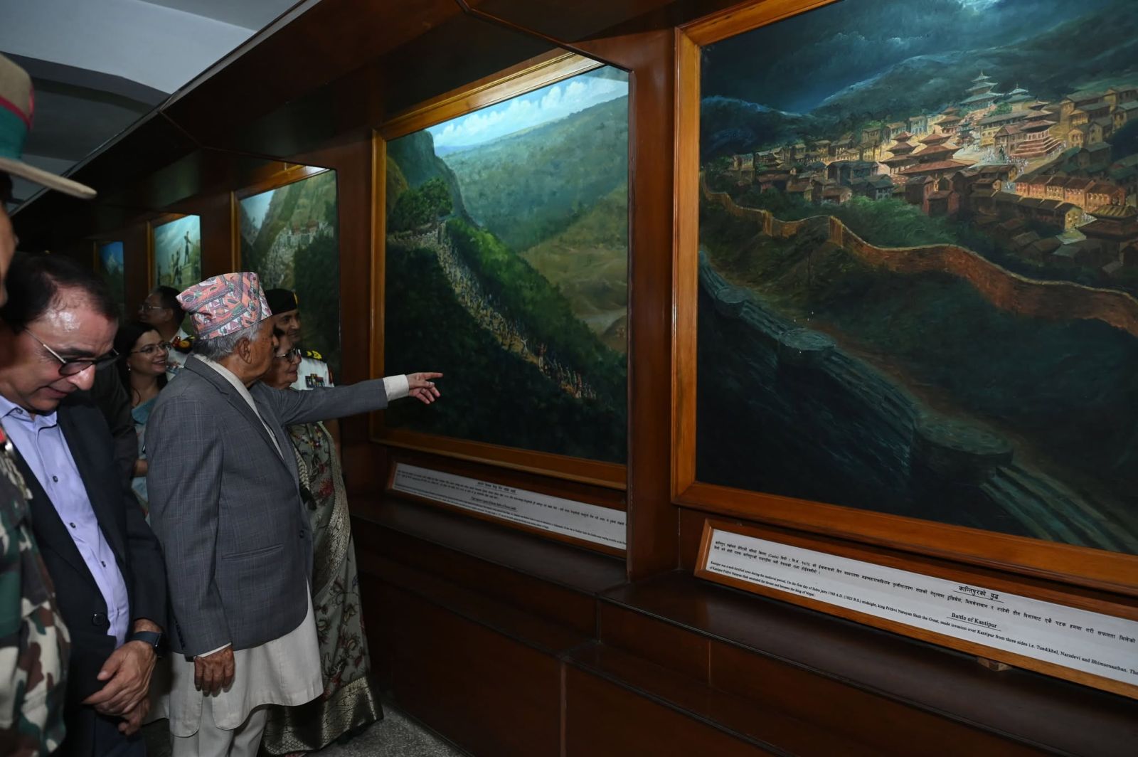 राष्ट्रपति पौडेल प्रथम महिला सबिता पौडेलसहित छाउनी संग्राहलय अवलोकन गर्न गएका हुन्।
