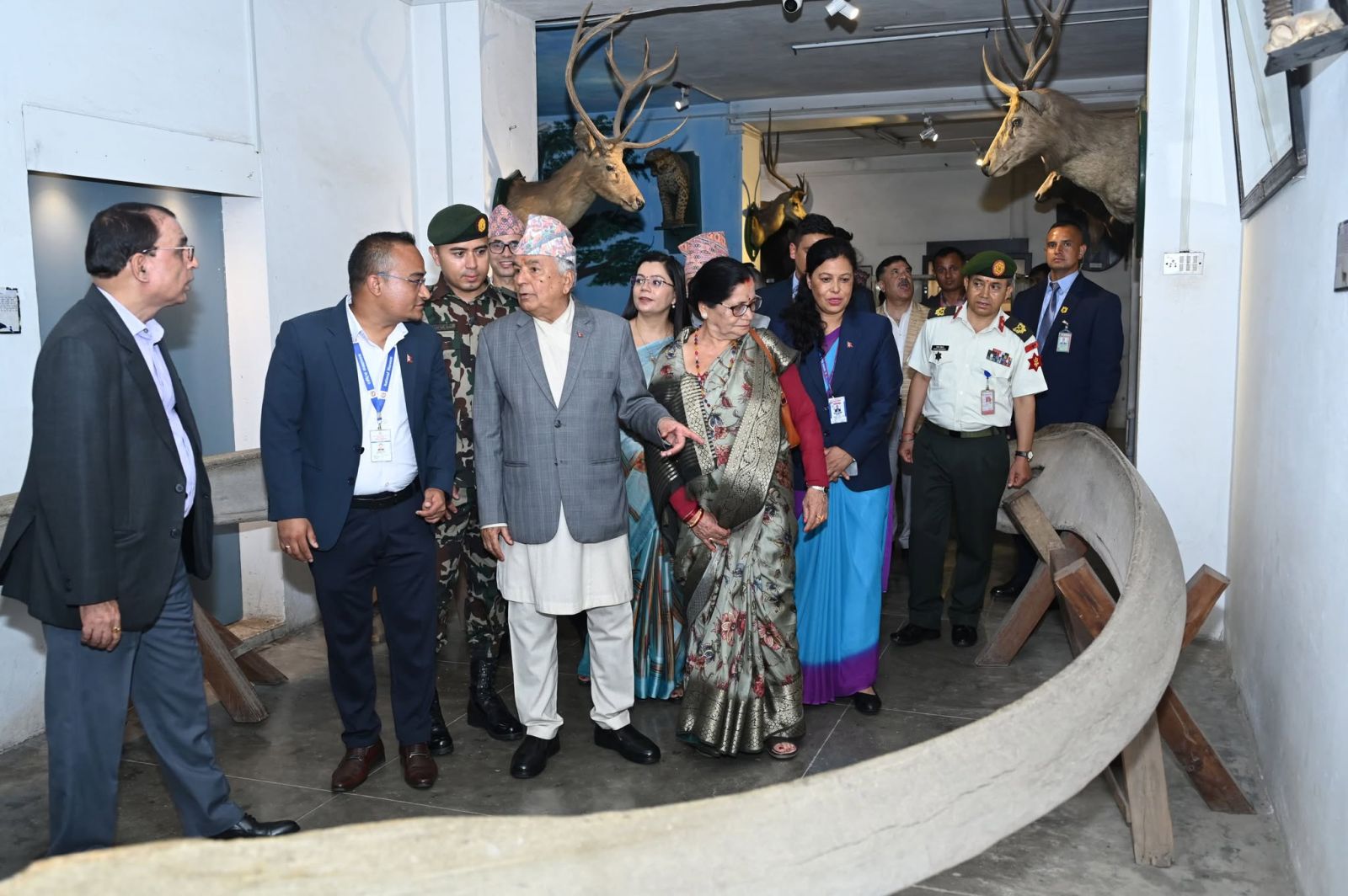 राष्ट्रपति रामचन्द्र पौडेलले छाउनीस्थित राष्ट्रिय संग्रहालय र नेपाली सेनाको सैनिक संग्रहालयको आइतबार अवलोकन गरेका छन्।