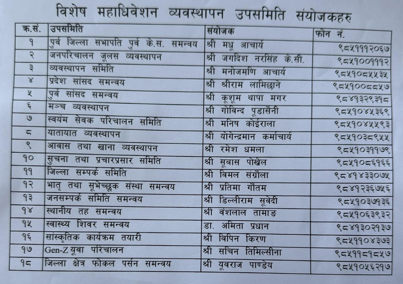 महाधिवेशनलाई व्यवस्थित बनाउन गठन गरिएका उपसमितिहरूमा पूर्व जिल्ला सभापतिदेखि भ्रातृ संस्थाका पूर्वअध्यक्षहरूसम्मलाई जिम्मेवारी दिइएको छ।