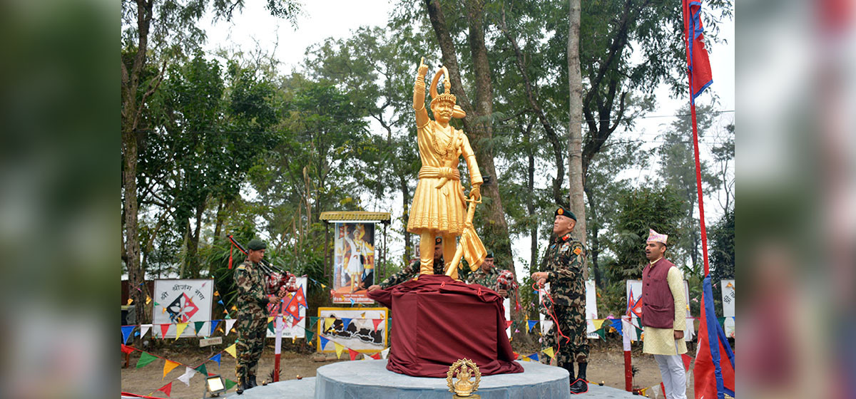 तत्कालीन राजा पृथ्वीनारायण शाहकालीन पोसाकमा सेनाको टोली पदयात्रामा निस्कने उनको भनाइ छ।