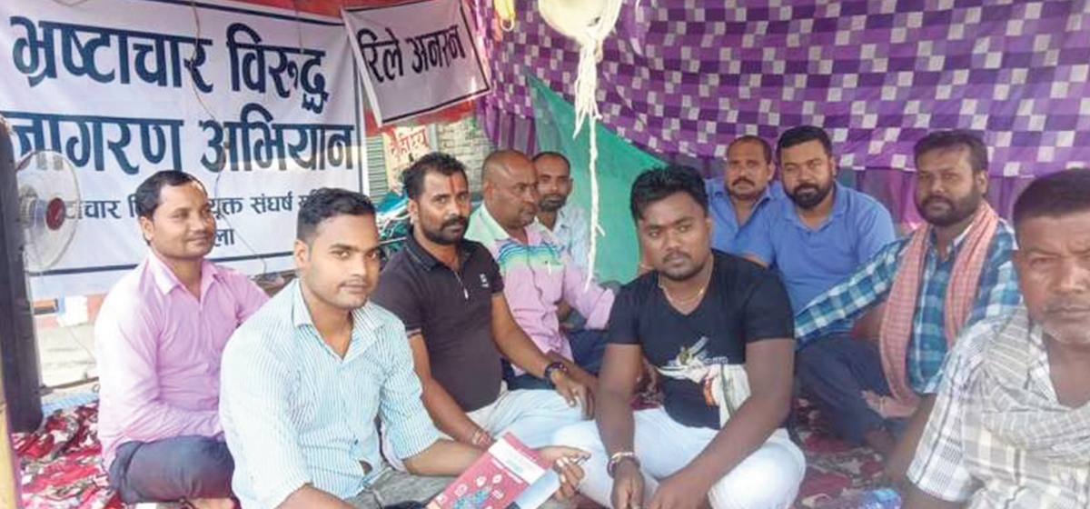 धनुषाको सबैला नगरपालिकाको मुल गेटअगाडि स्थानीय अनशन बसेको दुई साता भयो। निवेदन दिँदा पनि सूचना उपलब्ध नगराएपछि धनुषाको सबैला नगरपालिकामा भ्रष्टाचारविरुद्ध संयुक्त संघर्ष समितिका साताजना पदाधिकारी अनशन बसेका छन्।
