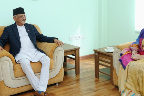 प्रधानमन्त्री तथा नेकपा (एमाले) अध्यक्ष केपी शर्मा ओली र पूर्वराष्ट्रपति विद्यादेवी भण्डारीबीचको भेटवार्ता सकिएको छ।