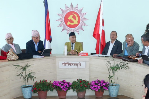 नेपाल कम्युनिष्ट पार्टी (एमाले) को पोलिटब्युरो बैठक पार्टी अध्यक्ष एवं प्रधानमन्त्री केपी शर्मा ओलीको अध्यक्षतामा पार्टी मुख्यालयमा जारी छ।