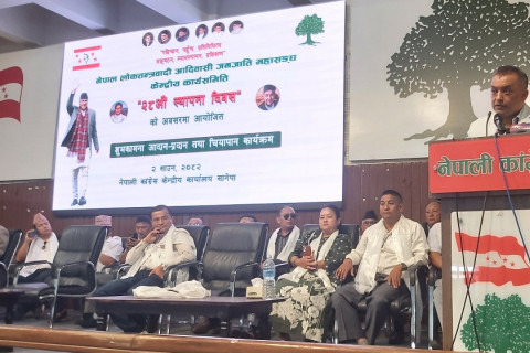 ‘पार्टी कार्यकर्ता गुटमा विभाजन हुँदा पार्टी कमजोर भएको छ,’ उनले भने, ‘पार्टीलाई एक ढिक्का बनाउन लोकतन्त्रमा आस्था राख्ने सबै जना सक्रिय हुने समय आएको छ ।’