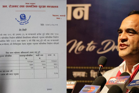 सरकारले हालै साउन १ गतेदेखि लागु हुने गरी श्रमिकको न्यूनतम मासिक पारिश्रमिक १९ हजार ५५० रुपैयाँ तोकेको थियो।