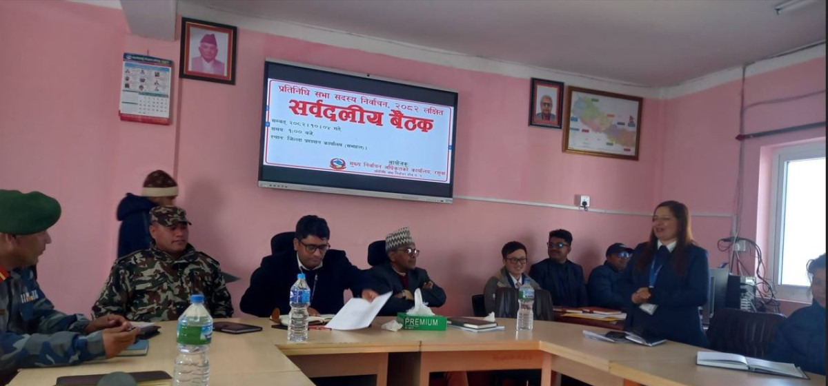 जिल्ला प्रशासन कार्यालयद्वारा आयोजित सो बैठक मुख्य निर्वाचन अधिकृत ध्रुवप्रसाद उप्रेतीका अध्यक्षतामा सम्पन्न भएको थियो। बैठकमा निर्वाचन तालिका र सहमति अनुसार राजनीतिक दल अगाडि बढ्ने,स्थानीय प्रशासकले सुरक्ष व्यवस्था सुदृढ पार्ने, जस्ता विविध विषयमा छलफल भएको थियो। जिल्लामा ४१ हजार चार सय ७१ मतदाताले आफ्नो मताधिकार प्रयोग गर्ने बताइएको छ।