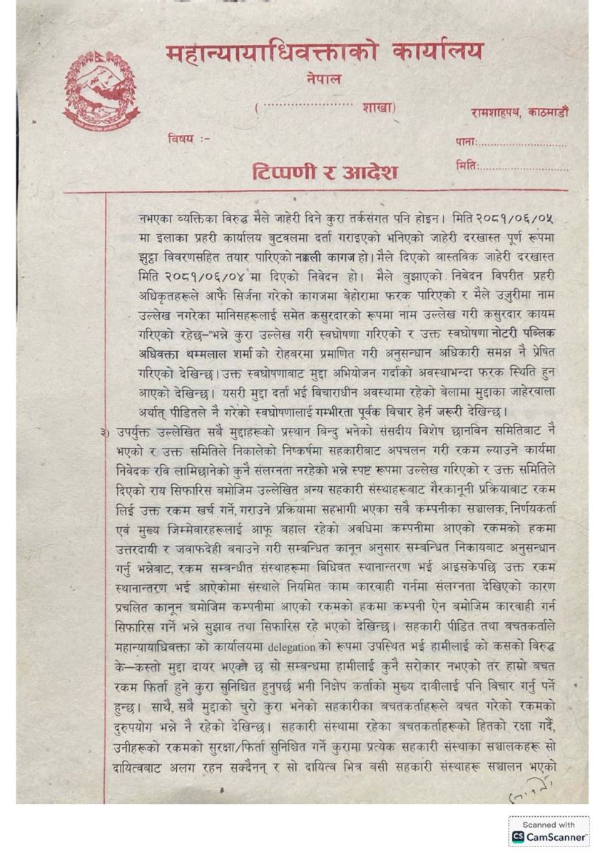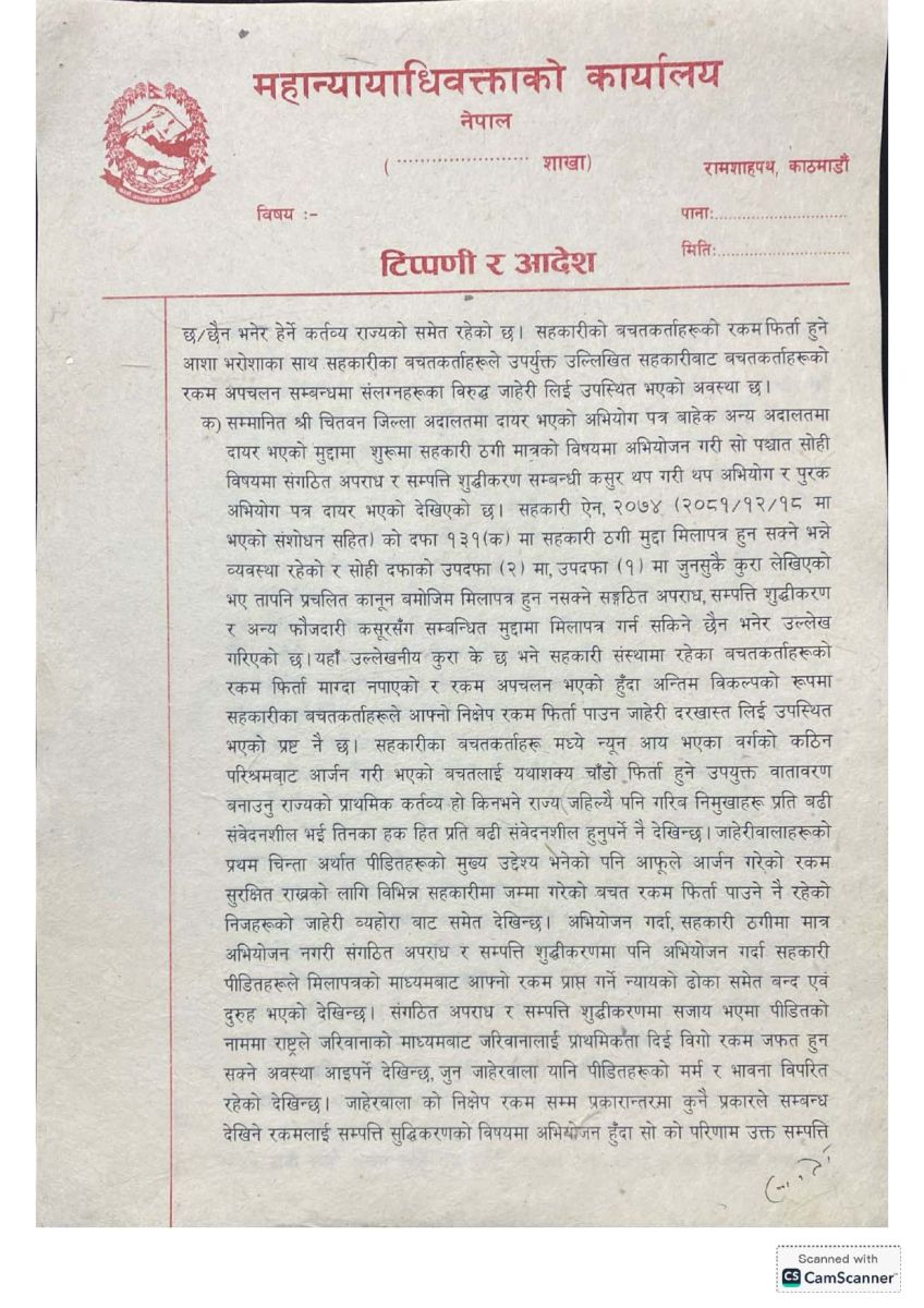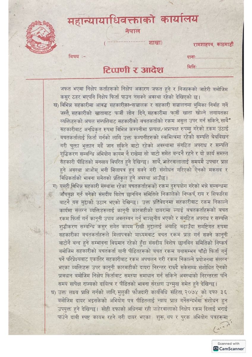 साथै, संगठित अपराध र सम्पत्ति शुद्धीकरणको मुद्दा चलाउँदा पीडित बचतकर्ताहरूले रकम फिर्ता पाउने सम्भावना न्यून हुने निष्कर्षमा पनि कार्यालय पुगेको छ।