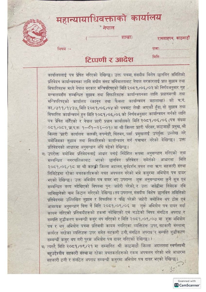 महान्यायाधिवक्ता कार्यालयद्वारा जारी गरिएको आदेशमा संसदीय छानबिन विशेष समितिको प्रतिवेदनलाई मुख्य आधार मानिएको छ।