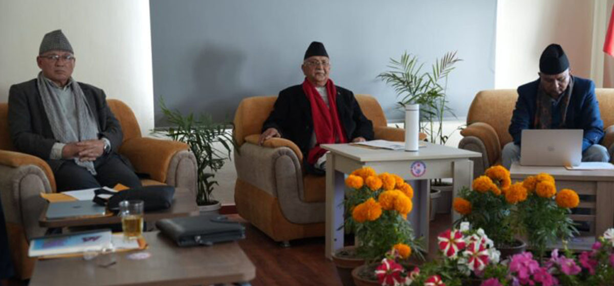 बैठकमा अध्यक्ष ओलीको दाहिनेतिर बादल बसेका थिए भने त्यसपछि उपाध्यक्षहरू विष्णुप्रसाद पौडेल, पृथ्वीसुब्बा गुरुङ, गोकर्ण विष्ट, रघुजी पन्त थिए।