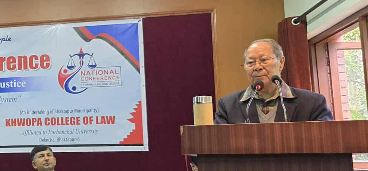 शनिबार भक्तपुरको देकोचास्थित ‘ख्वप कलेज अफ ल‘ ले आयोजना गरेको ‘फौजदारी कानुन र न्याय’ विषयक राष्ट्रिय सम्मेलनको उद्घाटन गर्दै अध्यक्ष विजुक्छेँले ठुला दलहरू मात्र नभई बुद्धिजीवीहरूसमेत व्यक्तिगत स्वार्थमा लाग्दा देश अप्ठ्यारो अवस्थामा पुगेको बताए।