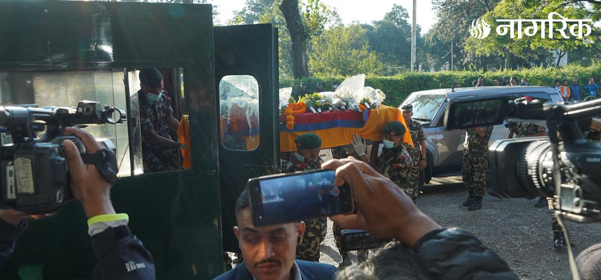 त्यसअघि काठमाडौंस्थित त्रिभुवन अन्तर्राष्ट्रिय विमानस्थलमा प्रधानमन्त्री सुशीला कार्की लगायतले राजकीय सम्मानका साथ उनीप्रति श्रद्धाञ्जली अर्पण गरेका थिए।