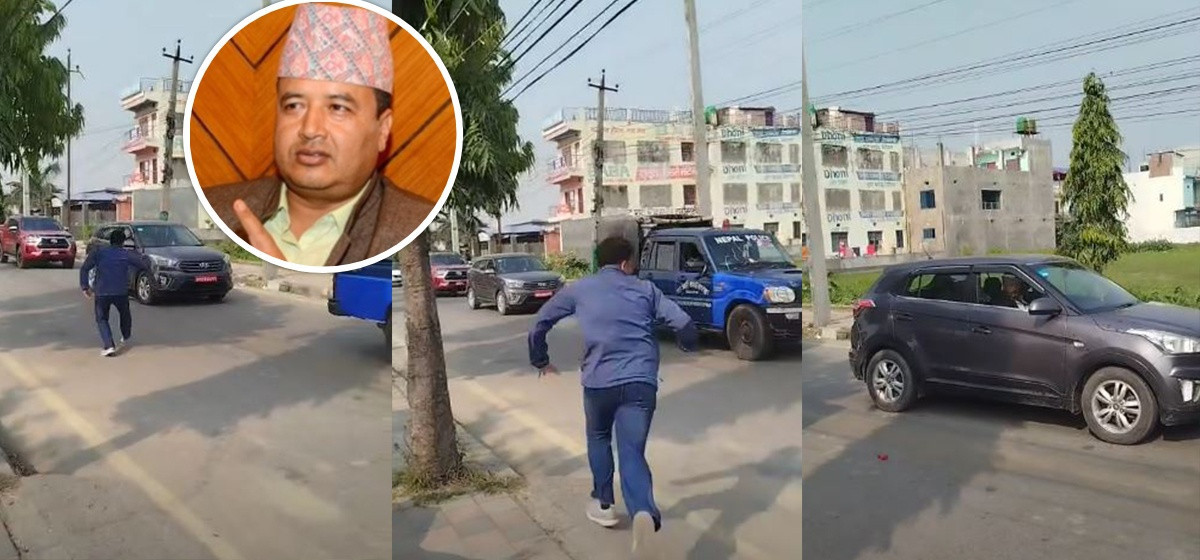 एमाले नेताहरु आउने खबरसँगै सुरक्षा अवस्था कडा बनाइए पनि विमानस्थलको गेट बाहिर रहेका युवाहरूले मसी भरिएको बेलुन प्रहार गरेका थिए । युवाहरूले प्रहार गरेको बेलुन बस्नेत सवार बा १७ च ५९६१ नम्बरको गाडीको सिसामा लागेको थियो ।