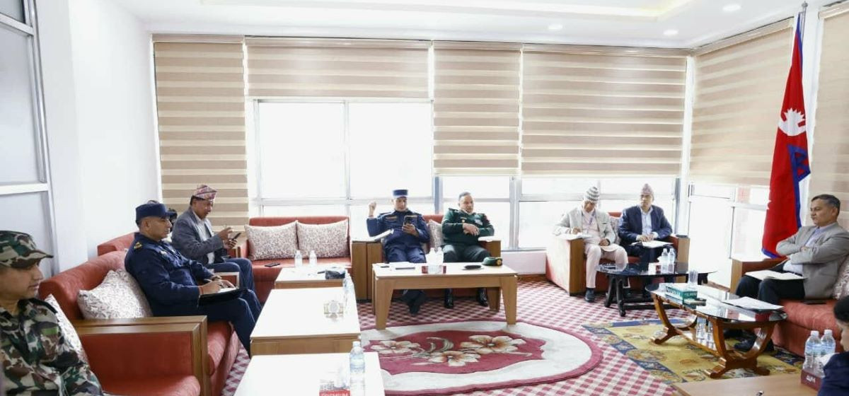बैठकमा केन्द्रीय सुरक्षा समितिका अध्यक्ष एवं गृहमन्त्री ओमप्रकाश अर्याल, गृहसचिव राजकुमार श्रेष्ठ, रक्षा मन्त्रालयका सचिव केदारनाथ शर्मा, सुरक्षा निकायका प्रमुख, गृहमन्त्रालयका उच्च अधिकारी सहभागी छन्।