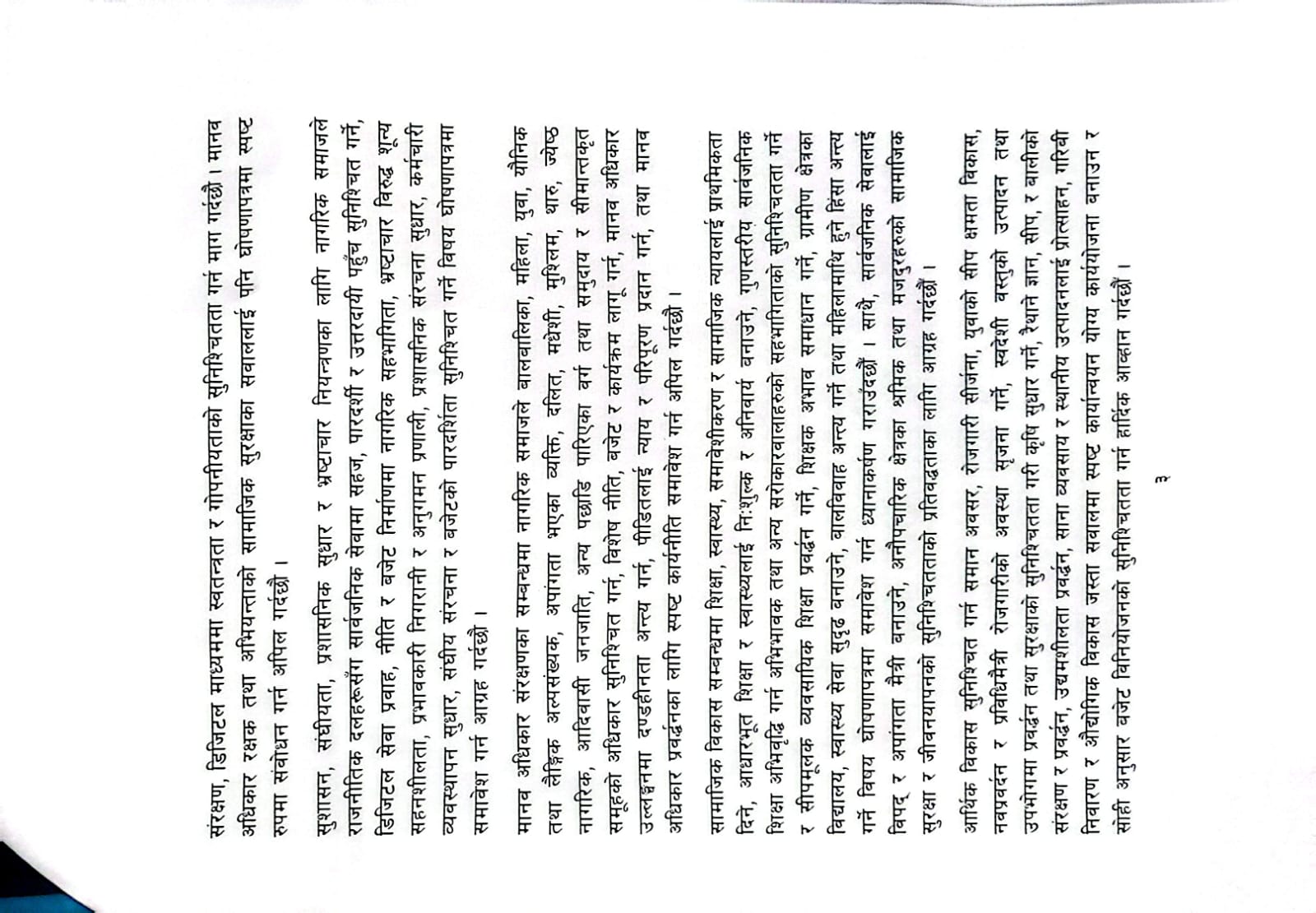 नागरिक समाजले राजनीतिक दलहरुलाई आफ्नो घोषणापत्रमा नागरिक अधिकार, सामाजिक न्याय, सुशासन, आर्थिक विकास र समृद्धि सुनिश्चित गर्ने विषय समावेश गर्न अपिल गरेको छ ।