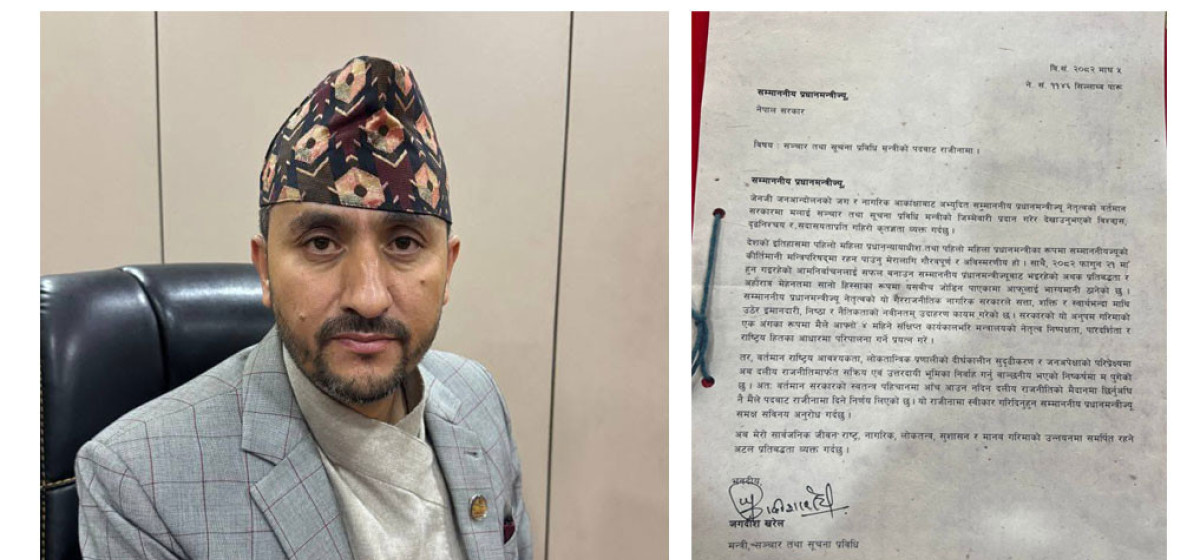 सञ्चार तथा सूचना प्रविधिमन्त्री जगदीश खरेलले राष्ट्रिय स्वतन्त्र पार्टी (रास्वपा)बाट चुनाव लड्नका लागि मन्त्री पदबाट राजीनामा दिएका छन्।
