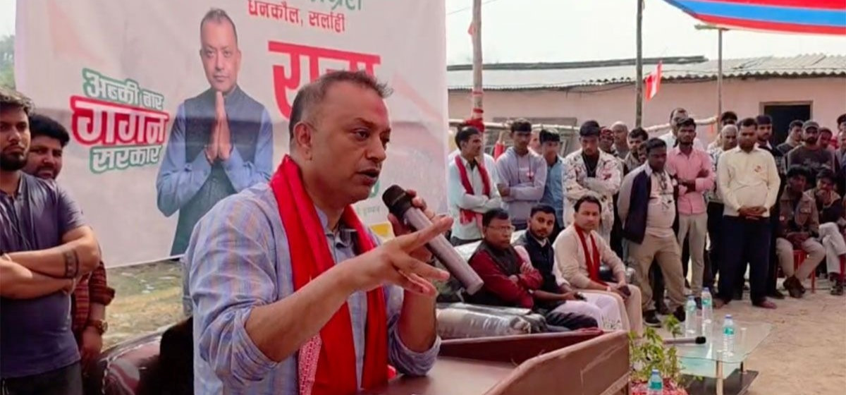 नेपाली कांग्रेसका सभापति गगनकुमार थापाले यदि कसैले नयाँ पार्टीमा भोट दिन्छु भने एकमात्र विकल्प कांग्रेस रहेको बताएका छन् । सर्लाहीको धनकौलमा आयोजित कार्यक्रममा बोल्दै उनले भने, 'यदि कसैले नयाँ पार्टी र नयाँ नेतृत्वमा भोट हाल्न चाहन्छ भने त्यो नेपाली कांग्रेस हो । किनकि कांग्रेस विरासतलाई बोकर नयाँ रूपमा नीति र नेतृत्व लिएर आएको छ ।'