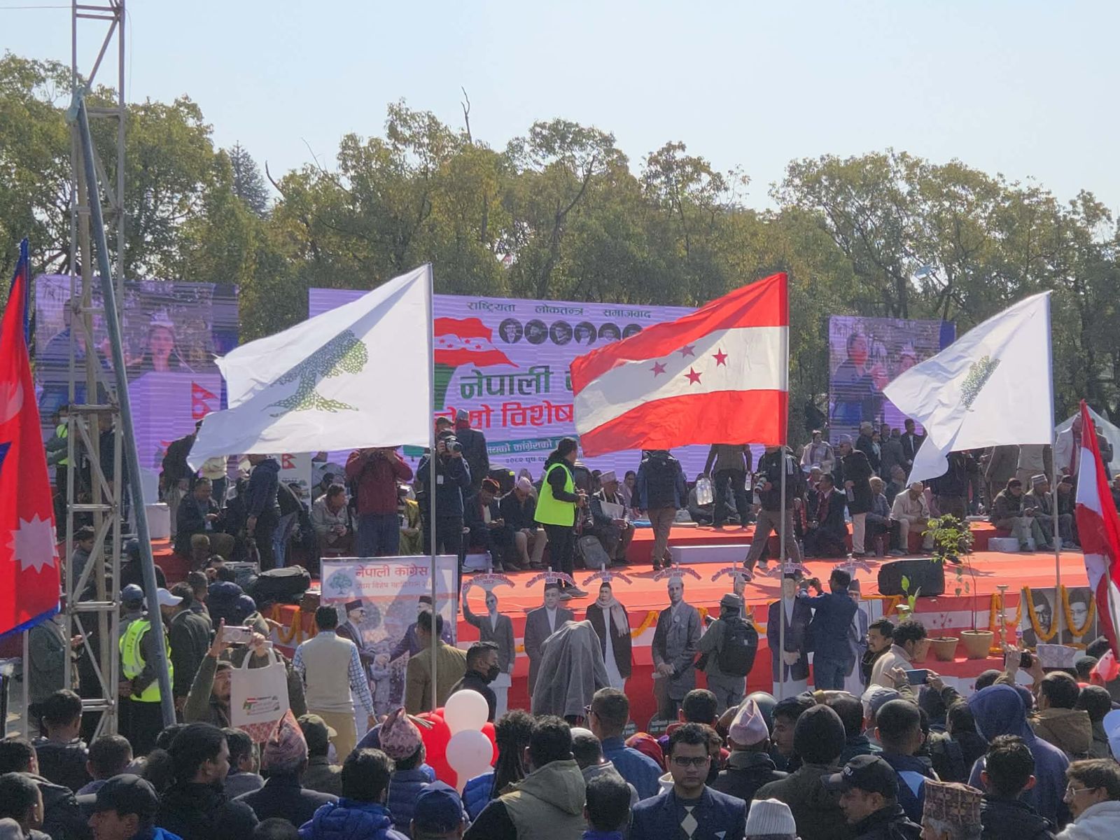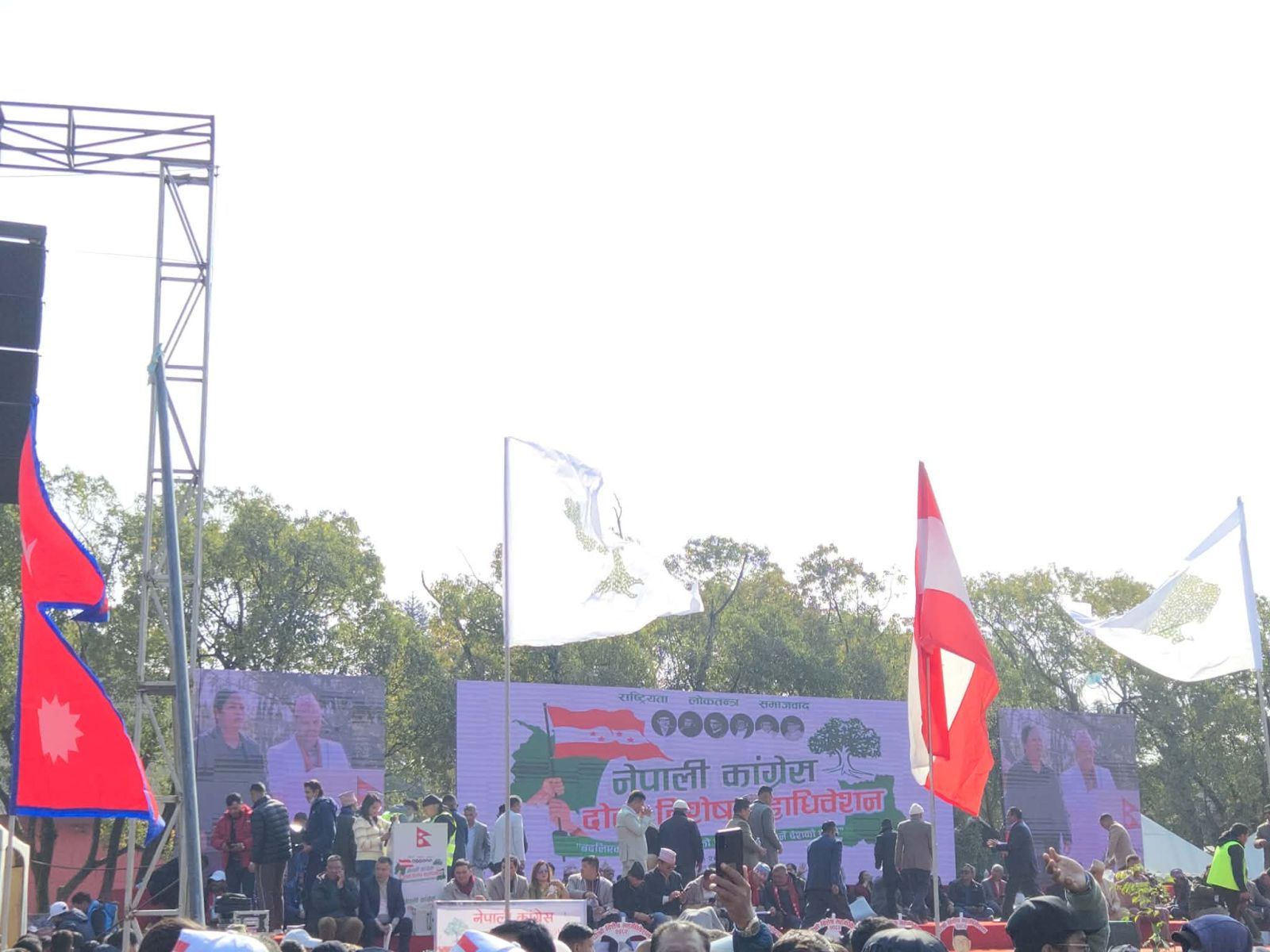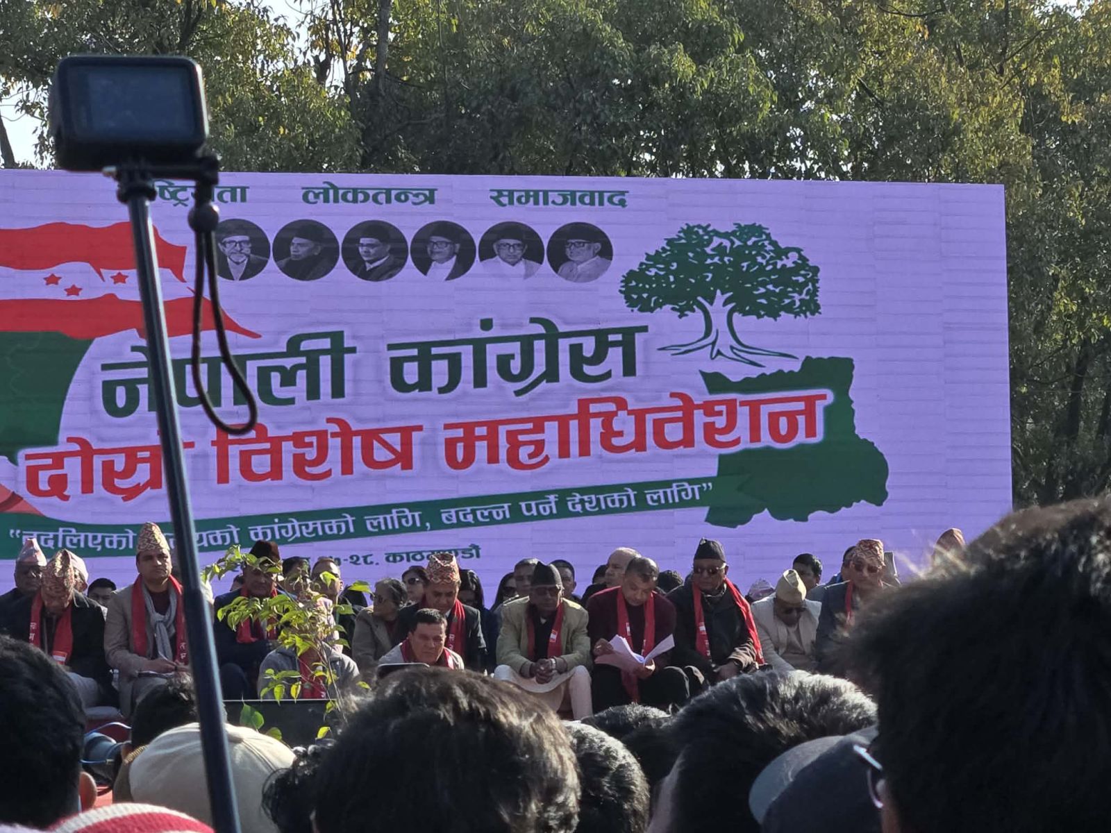 काठमाडौंको भृकुटीमण्डपमा जारी नेपाली कांग्रेसको विशेष महाधिवेशनको उद्घाटन सत्रमा संस्थापन (देउवा) पक्षका नेताहरूको समेत बाक्लो उपस्थिति देखिएको छ।