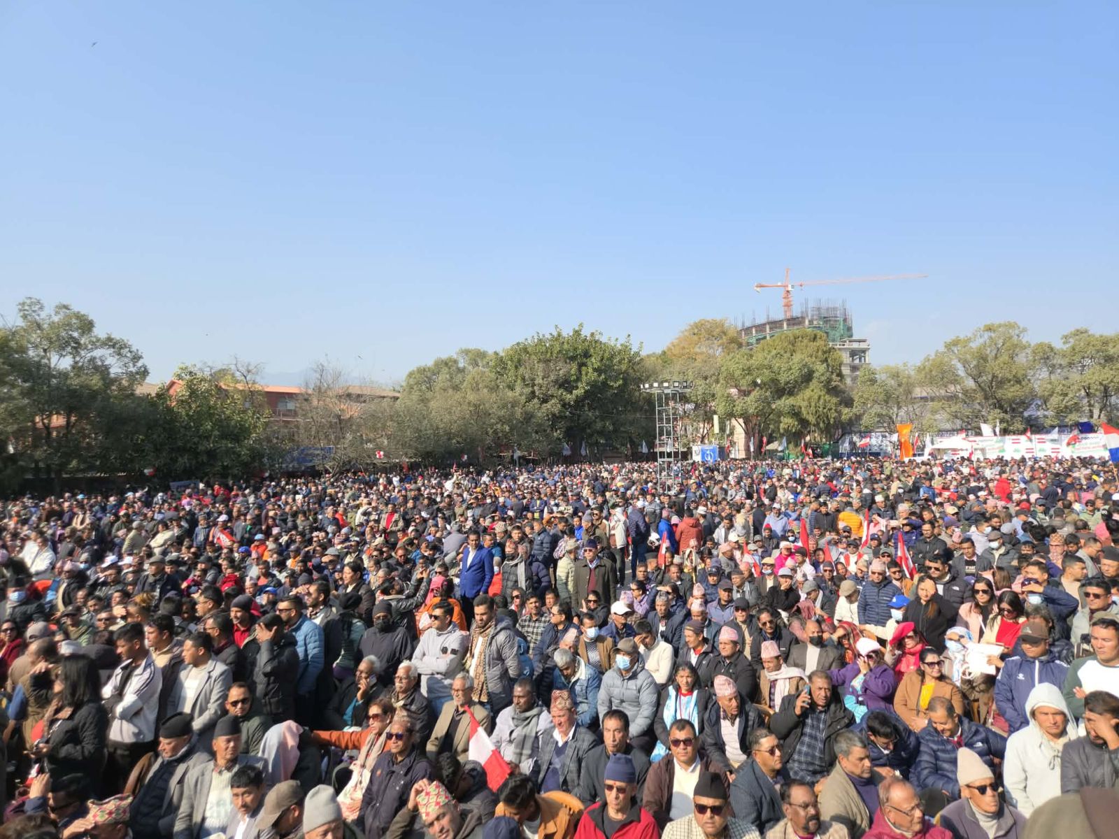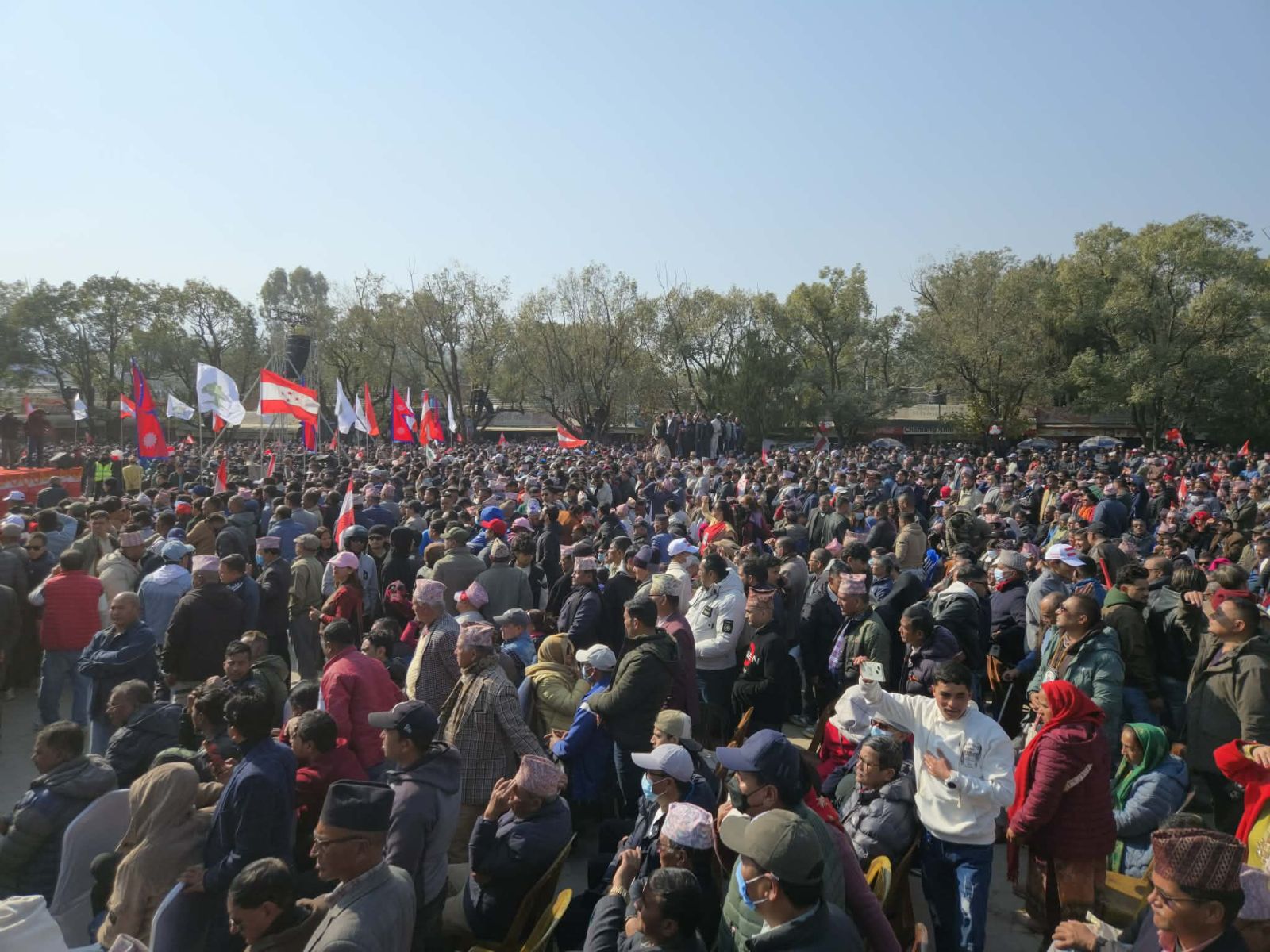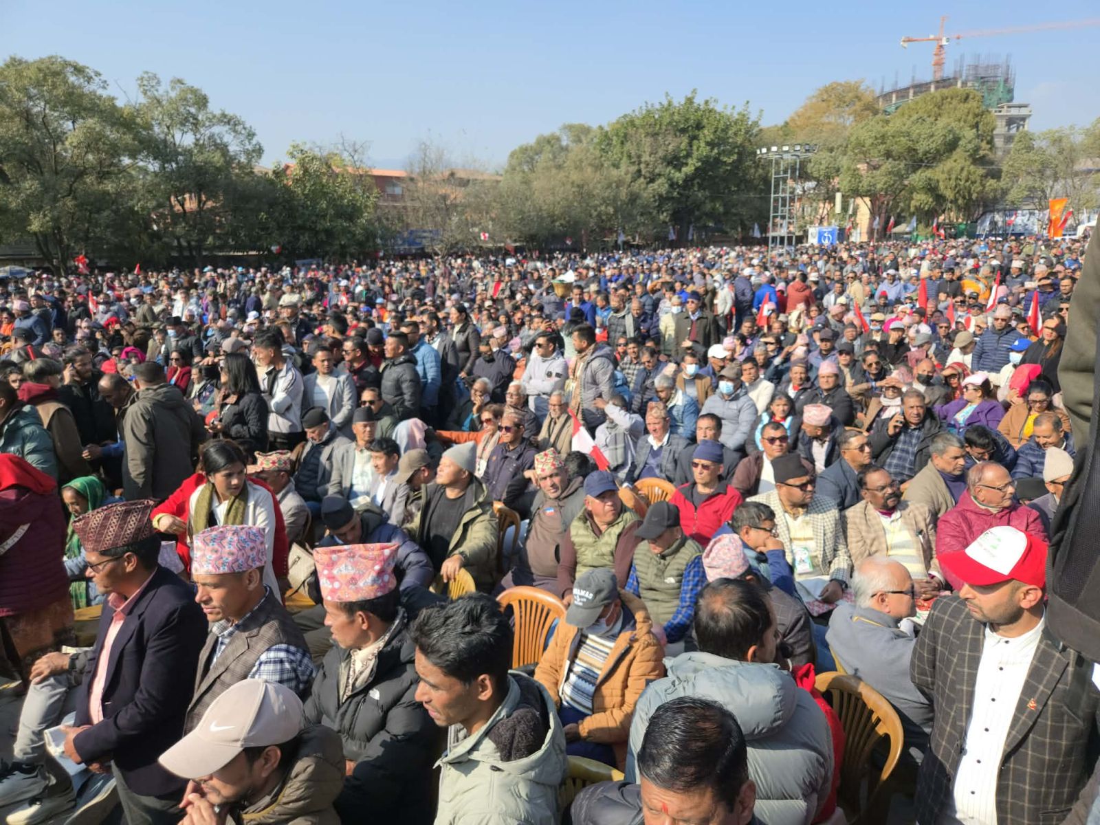 मञ्चमा नेताहरूका लागि कुर्सी राखिएको छैन। मञ्चमा आसिन शीर्ष नेताहरू कुसन (गद्दा) मा बसेका छन्। यद्यपि, तल रहेका कार्यकर्ता तथा प्रतिनिधिहरूका लागि भने कुर्सीको व्यवस्था गरिएको छ।