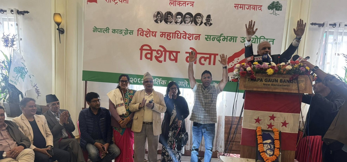 नेपाली कांग्रेसको विशेष महाधिवेशन पक्षधरको ‘विशेष भेला’ नयाँ बानेश्वरमा सुरु भएको छ। केही बेर अघिदेखि इतर पक्षका दोस्रो तहका नेताहरूको अगुवाइमा उक्त भेला सुरु भएको हो।
