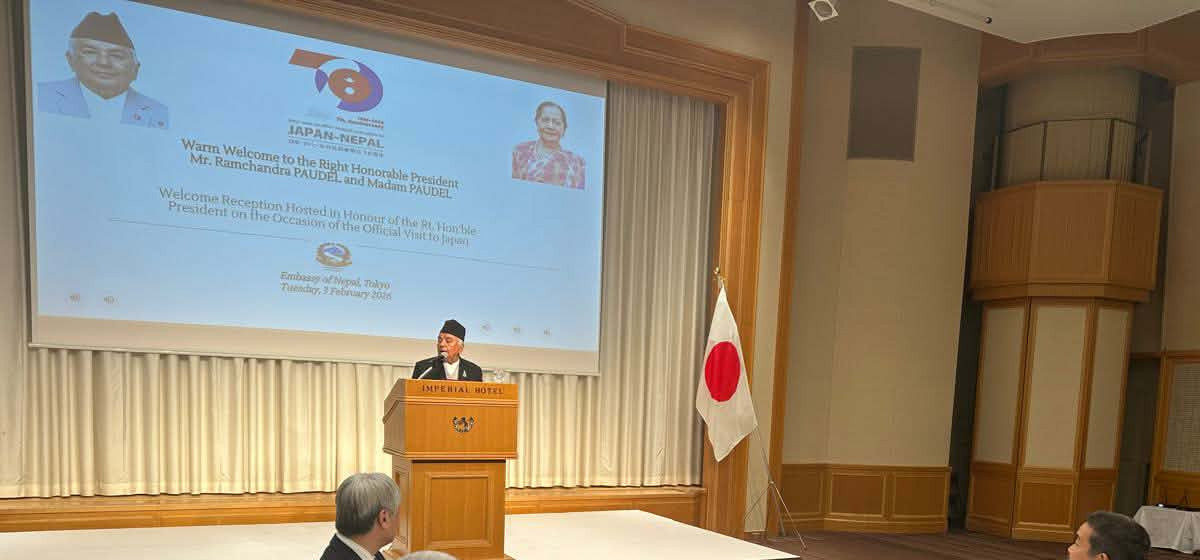 जापानको औपचारिक भ्रमणमा रहेका राष्ट्रपति पौडेलले टोकियोस्थित नेपाली राजदूतावासद्वारा आयोजित स्वागत समारोहलाई सम्बोधन गर्दै नेपाली समुदायलाई स्वदेशको समृद्धिमा सहभागी हुन आह्वान गरेका हुन्।