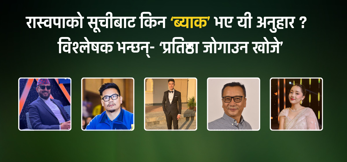 फागुन २१ गते हुने प्रतिनिधि सभा निर्वाचनका लागि रास्वपाले पेस गरेको बन्दसूचीमा विभिन्न पृष्ठभूमिका व्यक्तिहरूको नाम समावेश भएपछि जेन-जी अभियानकर्मी, नागरिक अधिकारकर्मी र राजनीतिक विश्लेषकहरूले प्रश्न उठाएका थिए।