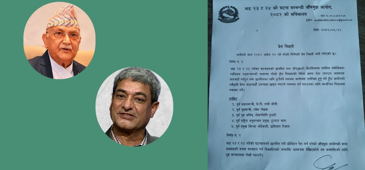 जेन–जी आन्दोलनका क्रममा राज्यपक्षबाट भएको दमनबारे छानबिन गर्न बनेको जाँचबुझ आयोगले तत्कालीन प्रधानमन्त्री केपी शर्मा ओलीसहित पाँच जनालाई अनुसन्धानमा तानेको छ। जाँचबुझ आयोगले ओलीसहित तत्कालीन गृहमन्त्री रमेश लेखक, गृहसचिव गोकर्णमणि दुवाडी, राष्ट्रिय अनुसन्धानका तत्कालीन प्रमुख हुतराज थापा र काठमाडौंका तत्कालीन सिडिओ छवि रिजाललाई अनुसन्धानमा तानेको हो।