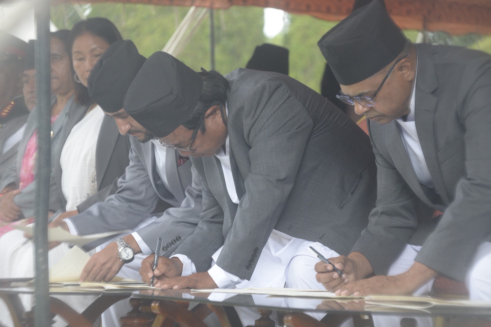पूर्वन्यायाधीश अनिलकुमार सिन्हा, राष्ट्रिय आविष्कार केन्द्रका संस्थापक महावीर पुन, पत्रकार जगदिश खरेल, विज्ञ मदन परियारले मन्त्रीको शपथ लिएका हुन्।