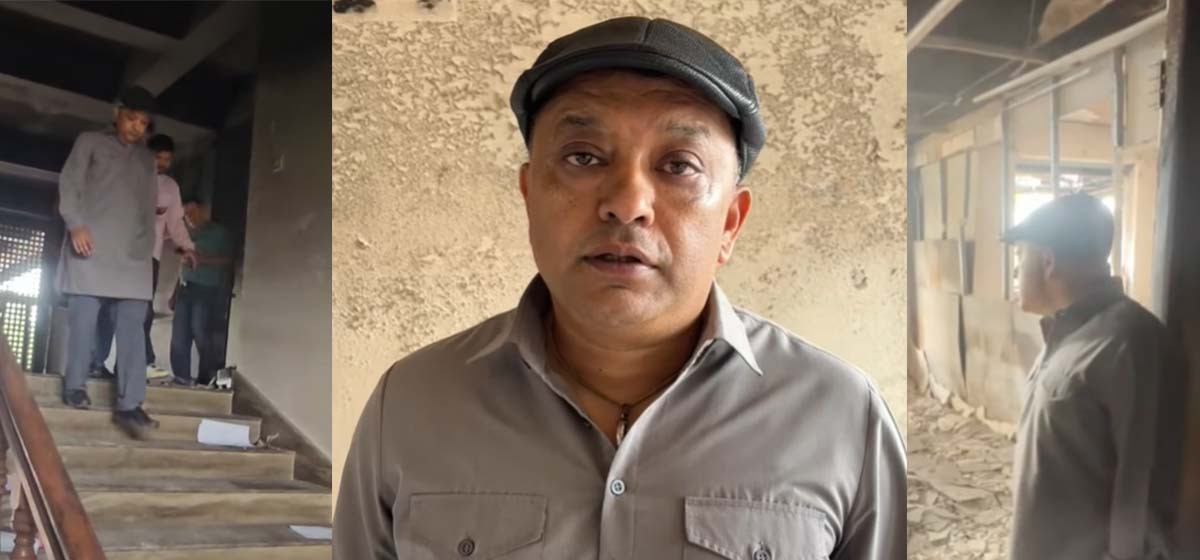 आगजनीले कालो बनेको भित्ता र जलेका पुस्तकको खरानीबीचबाट भिडियो सन्देश जारी गर्दै महामन्त्री थापाले शब्द नै हराएको भन्दै आफू स्तब्ध भएको बताए।