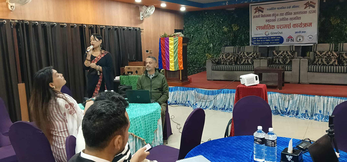 गिभ आउटको सहयोगमा मायाको पहिचान नेपाल, लिड नेपाल, इन्क्लुसिभ फोरम लगायत संस्थाहरूको संयुक्त आयोजनामा भएको ‘राजनीतिक सहभागिता, हाम्रो अधिकार’ विषयक राष्ट्रिय परामर्श कार्यक्रममा सहभागीहरूले लैङ्गिक तथा यौनिक अल्पसङ्ख्यक समुदायको प्रतिनिधित्व सुनिश्चित हुनुपर्नेमा जोड दिए।