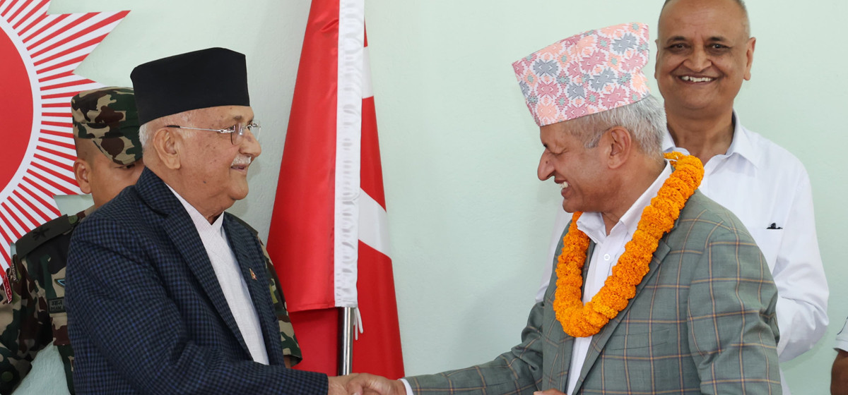 सोमबार पार्टी केन्द्रीय कार्यालय च्यासलमा आयोजित प्रतिष्ठानको पदस्थापन तथा शपथ ग्रहण समारोहमा बोल्दै अध्यक्ष ओलीले ज्ञवालीलाई बधाई तथा सफल कार्यकालको शुभकामना दिए।