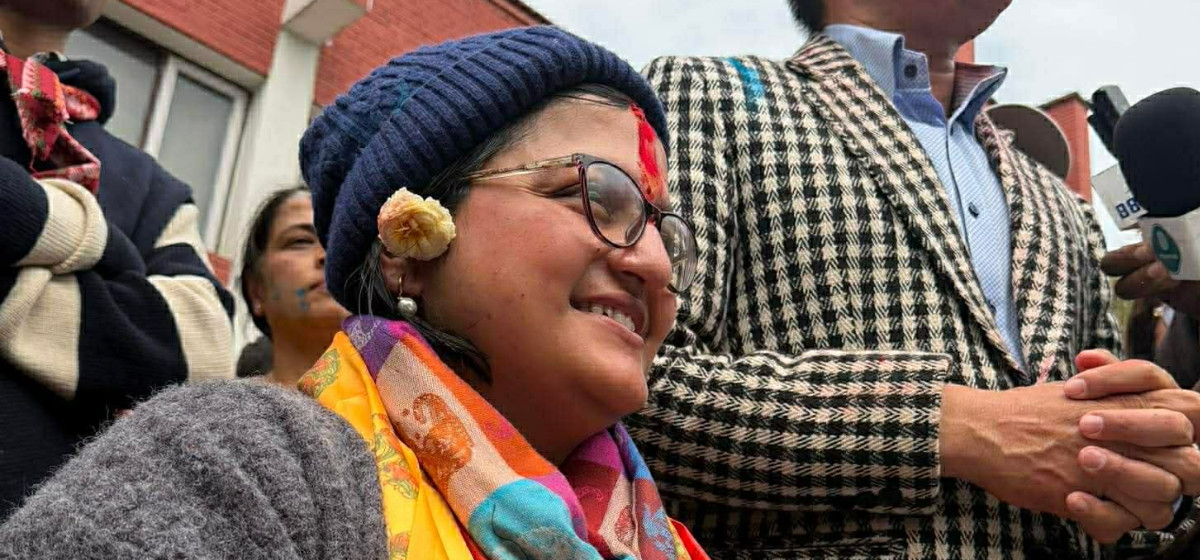 सुन्निएको शरीर र घाँटीको संक्रमणका बाबजुद उनी मतदातालाई धन्यवाद दिन र खुसी साट्न मतगणना स्थल पुगेकी हुन्। ९ महिनाको गर्भ बोकेरै चुनावी प्रचारमा होमिएकी उनलाई मतदाताले साहसी नेतृका रूपमा अनुमोदन गरे।