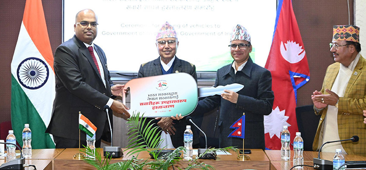 बिहीबार अर्थ मन्त्रालयमा आयोजित भारतीय दूतावास काठमाडौंका कार्यवाहक राजदूत डा. राकेश पाण्डेले अर्थमन्त्री रामेश्वर खनाललाई सवारी साधन हस्तान्तरण गरेका हुन् । भारत सरकारले निर्वाचनसम्बन्धी सहयोगको दोस्रो चरणमा नेपाललाई ती सवारी साधन हस्तान्तरण गरेको हो ।
