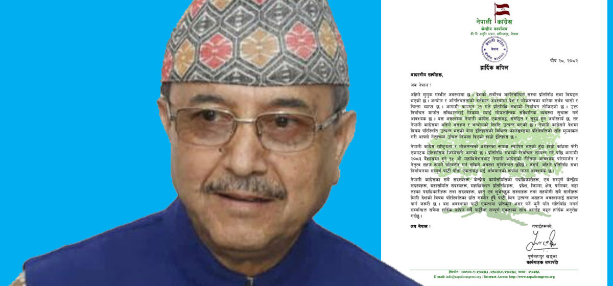 पार्टी एकतामा नकारात्मक असर पर्ने कुनै पनि गतिविधि नगर्न सबैलाई हार्दिक अपिल गर्दै खड्काले नेपाली कांग्रेसलाई सुदृढ र एकताबद्ध बनाएर अघि बढ्न आग्रह गरेका छन्।