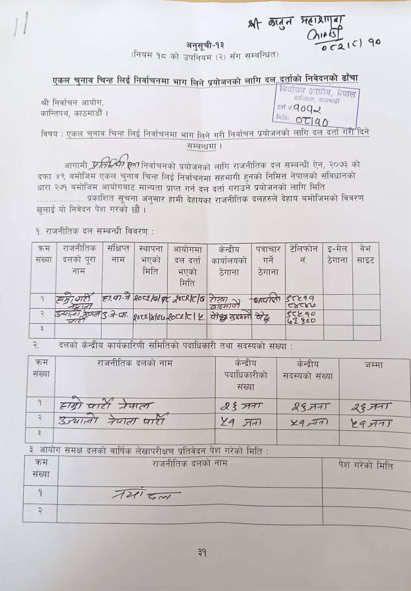 हाम्रो पार्टी नेपालका खग्रेन्द सुनार र उज्यालो पार्टी नेपालका अनुपकुमार उपाध्यायले एकल चुनावमा निर्वाचनमा भाग लिने भन्दै आयोगमा आवेदन दिएका थिए ।