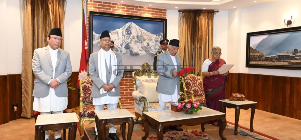शपथ समारोहमा राष्ट्रपति रामचन्द्र पौडेल, उपराष्ट्रपति, प्रधानन्यायाधीशको मात्र उपस्थिति थियो ।