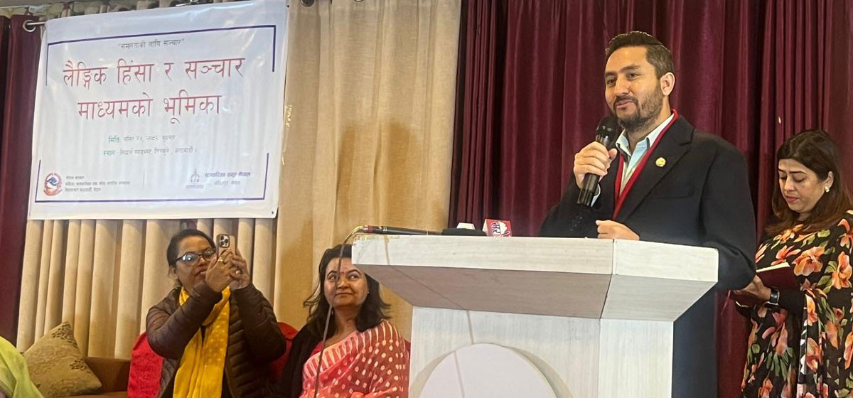 सञ्चारिका समूह नेपालले सोमबार काठमाडौमा आयोजना गरेको ‘लैंगिक हिंसा र सञ्चार माध्यमको भूमिका’ विषयक अन्तरक्रियामा मन्त्री खरेलले डिजिटल हिंसाबाट जोगिन पत्रकार महिलाहरुको दोहोरो जिम्मेवारी रहेको बताए ।