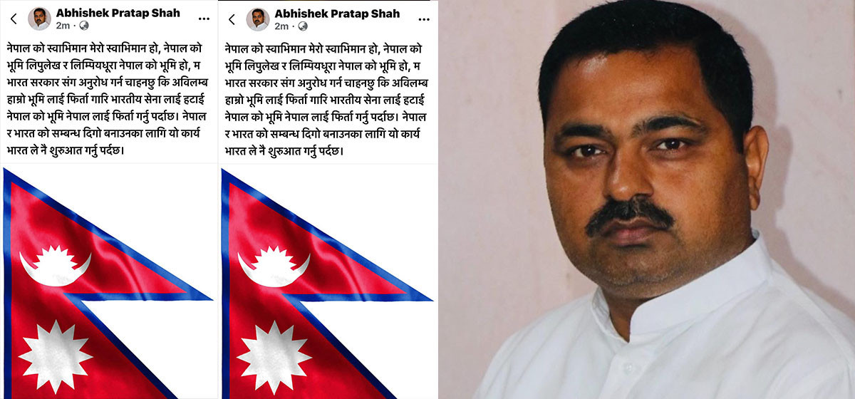 कपिलवस्तुको निर्वाचन क्षेत्र नम्बर ३ बाट तीन पटक सांसद भएका नेता शाहले फेसबुकमा नेपाली झण्डा राखेर स्टाटस लेख्दै सो माग गरेका हुन्। साथै भारतले सो भूमि फिर्ता गरी त्यहाँबाट सेना हटाउन समेत उनले अपील गरे।