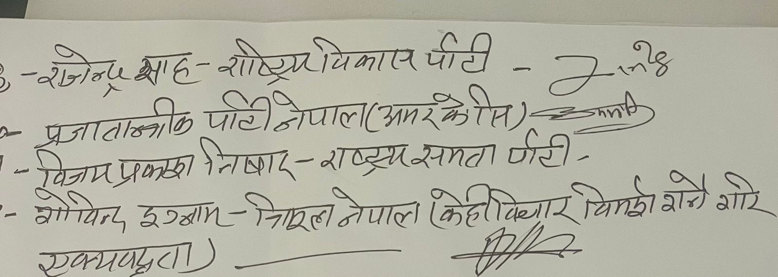 आम मतदाता तथा सर्वसाधारण नागरिकबी त्रासको वातावरण कायमै रहँदा निष्पक्ष, स्वतन्त्र र विश्वसनीय निर्वाचन सम्भव नहुने भएकाले सरकारबाट आवश्यक सुरक्षा, विश्वास र अनुकूल वातावरण सुनिश्चित नभएसम्म हामी तपसिलमा उल्लिखित दलहरू निर्वाचन प्रक्रियामा सहभागी हुन नसक्ने जानकारी गराउन प्रधानमन्त्रीलाई भेट्न हिँडेको कल्पितले बताए ।