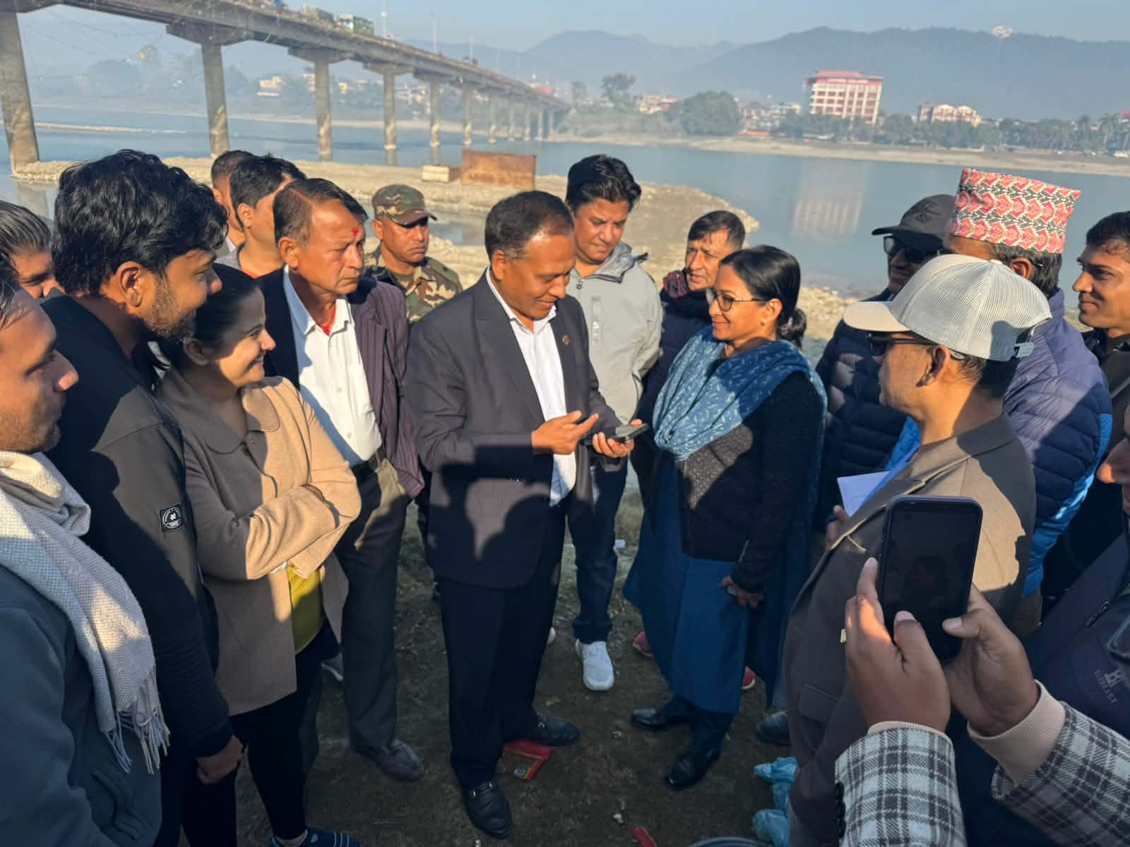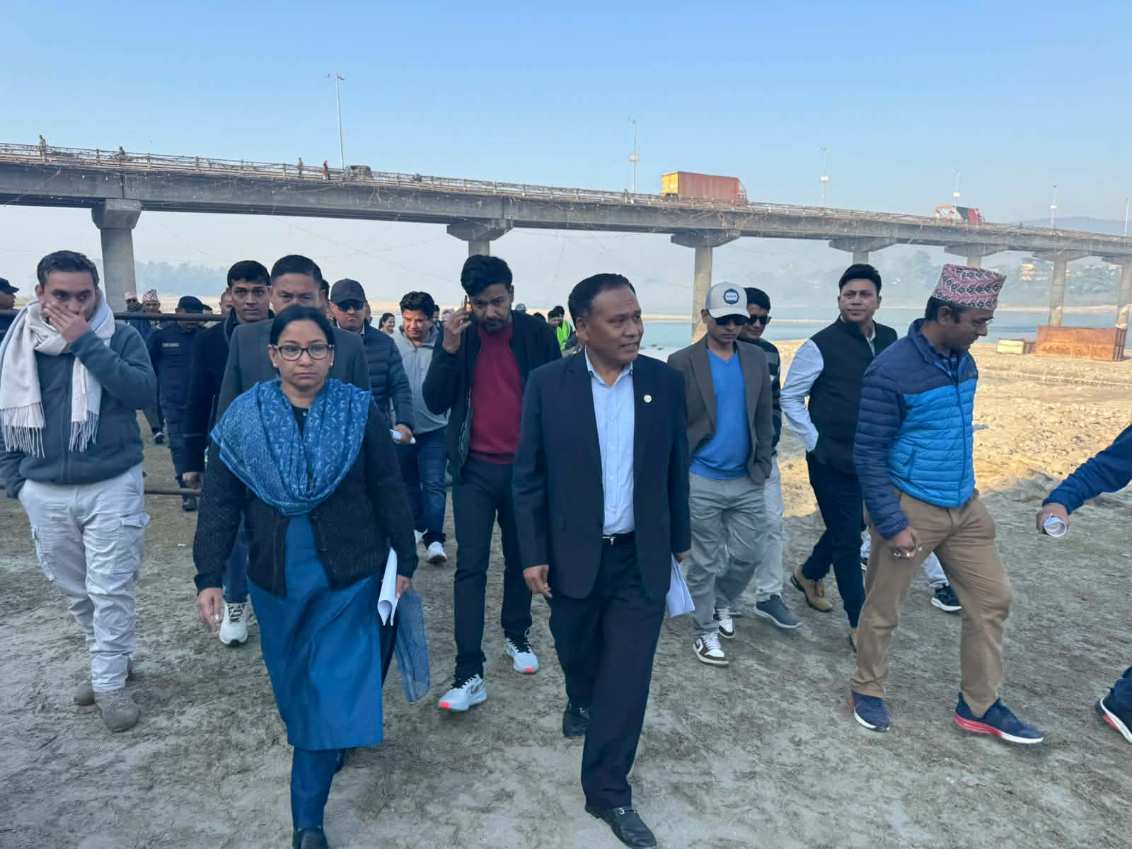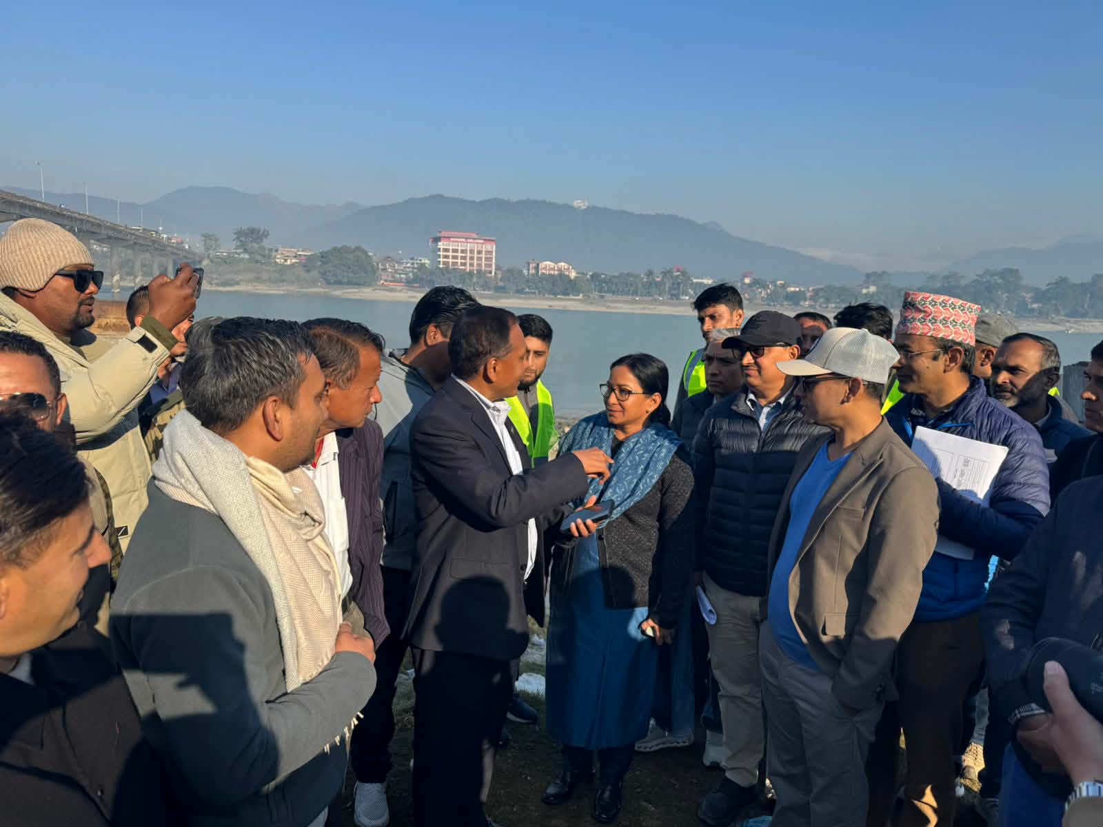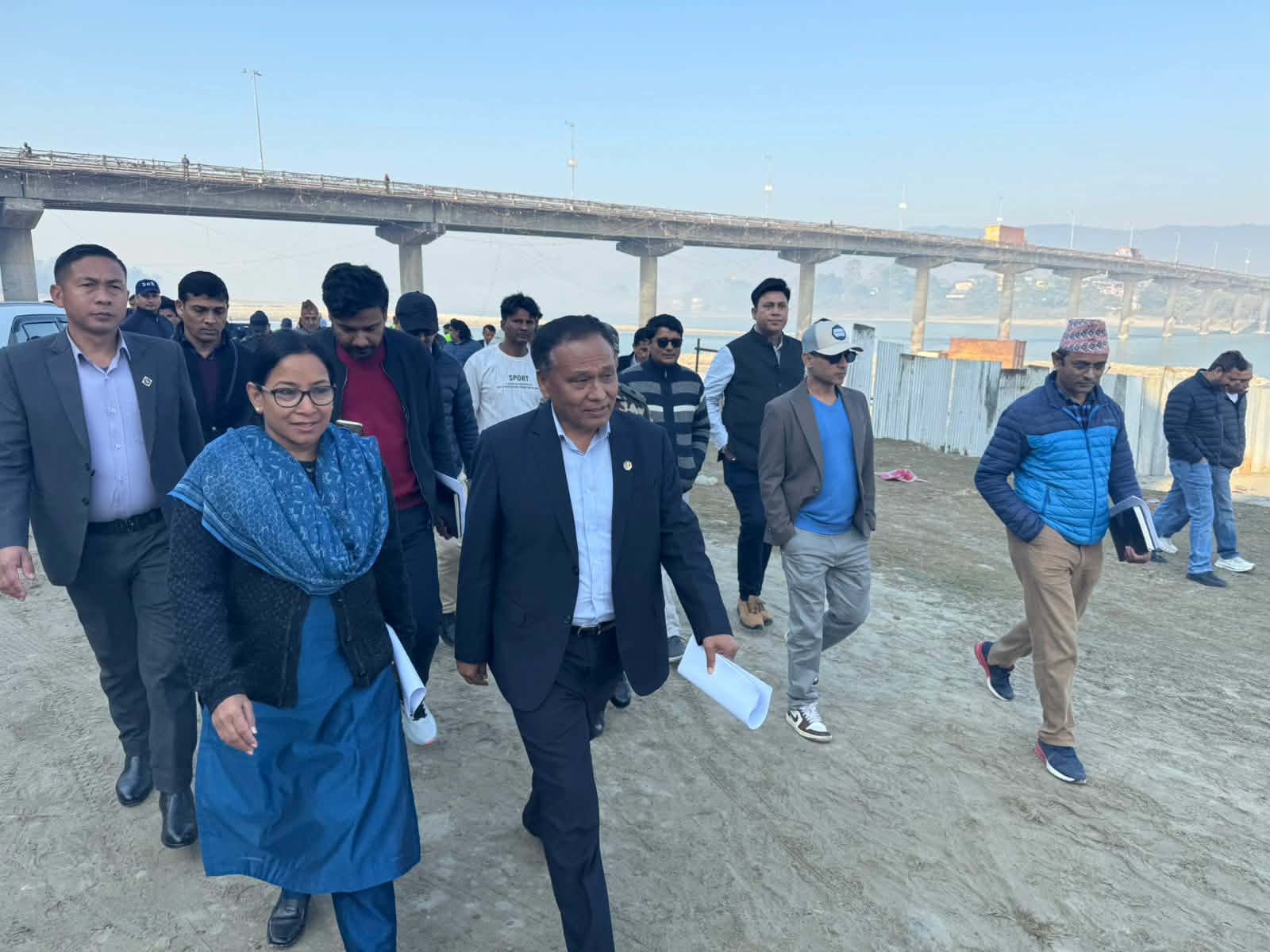 ऊर्जा, जलस्रोत तथा सिँचाइ, भौतिक पूर्वाधार तथा यातायात र सहरी विकास मन्त्री कुलमान घिसिङले शनिबार बिहान नारायणी नदीमा निर्माण सुरु भएको सिग्नेचर ब्रिजको निरीक्षण गरेका छन्।