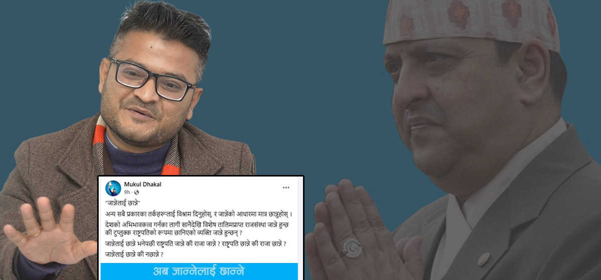 राष्ट्रिय स्वतन्त्र पार्टी(रास्वपा)बाट निष्कासित पूर्व महामन्त्री डा.मुकुल ढकाल पछिल्लो समय सामाजिक सञ्जालमा ‘राजावादी लाइन’मा प्रस्तुत हुन थालेका छन्। जेन–जी आन्दोलनयताका दिनमा ढकालका अभिव्यक्तिमा प्रस्टै राजावादी लाइन देखिन्छ।