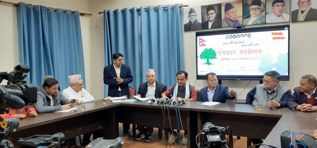 ६, कांग्रेस अनेक अप्ठेराबीच विशेष महाधिवेशनबाट यहाँ आइपुगेको । निर्वाचनमा खटिएका नेता कार्यकर्तालाई सम्मान गर्न चाहन्छौँ । कुनै निर्वाचन क्षेत्रबाट को उम्मेदवार छ भन्ने दोस्रो कुरा भएको र अहिलेको परिस्थितिमा कांग्रेसले जित्नैपर्ने कुरालाई ध्यान दिन आग्रह । देशभरका नेता कार्यकर्तालाई थप एकता र ऊर्जासाथ लाग्न आग्रह । फागुन २१ गतेको दिन मतदान केन्द्रमा संयम र एकतापूर्वक बुथमा सहजीकरण गर्न आग्रह ।