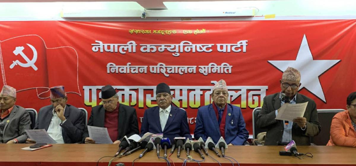 नेपाली कम्युनिष्ट पार्टी (नेकपा)ले संविधान कार्यान्वयनको समीक्षा एवं पुनरावलोकन गरी शासकीय स्वरूप, निर्वाचन प्रणालीलगायत विभिन्न विषय परिमार्जन गर्ने प्रतिबद्धता व्यक्त गरेको छ । निर्वाचनको सम्मुखमा आज अपिल जारी गर्दै नेकपाले उच्चस्तरीय सम्पत्ति छानबिन आयोग गठन गरेर आजसम्म सार्वजनिक पद धारणा गरेका व्यक्तिको सम्पत्ति छानबिन गरिने दृढता व्यक्त गरेको छ ।