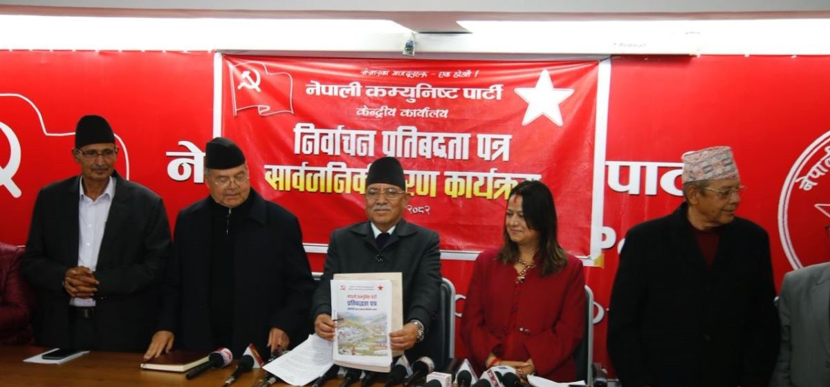नेपाली कम्युनिष्ट पार्टीले आगामी पाँच वर्षभित्र वार्षिक १० प्रतिशतभन्दा माथिको आर्थिक वृद्धिदर हासिल गर्ने लक्ष्यसहित आज आफ्नो प्रतिबद्धता पत्र सार्वजनिक गरेको छ।