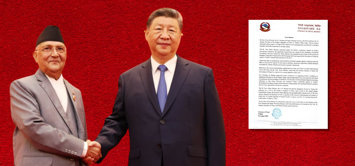 सांघाई सहयोग संगठन (एससीओ) को शिखर सम्मेलनमा सहभागी हुन चीन पुगेका प्रधानमन्त्री ओलीले शनिबार थियानजिनमा भएको द्विपक्षीय भेटवार्तामा उक्त विषयलाई प्राथमिकतामा राखेको राजदूतावासको भनाइ छ।