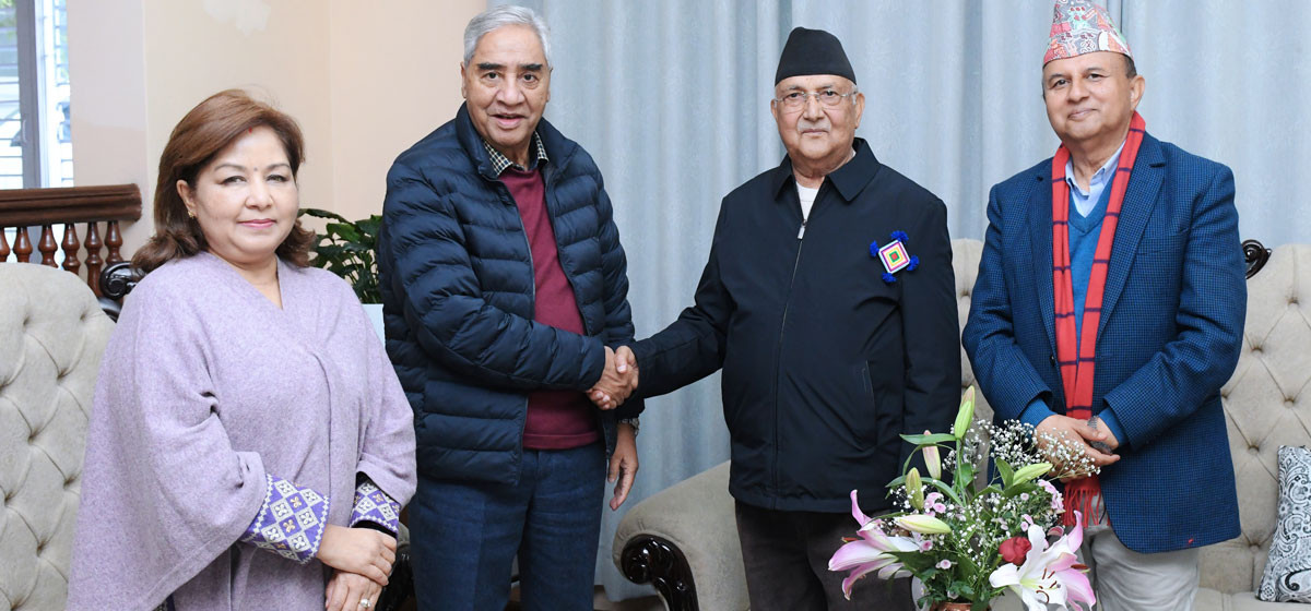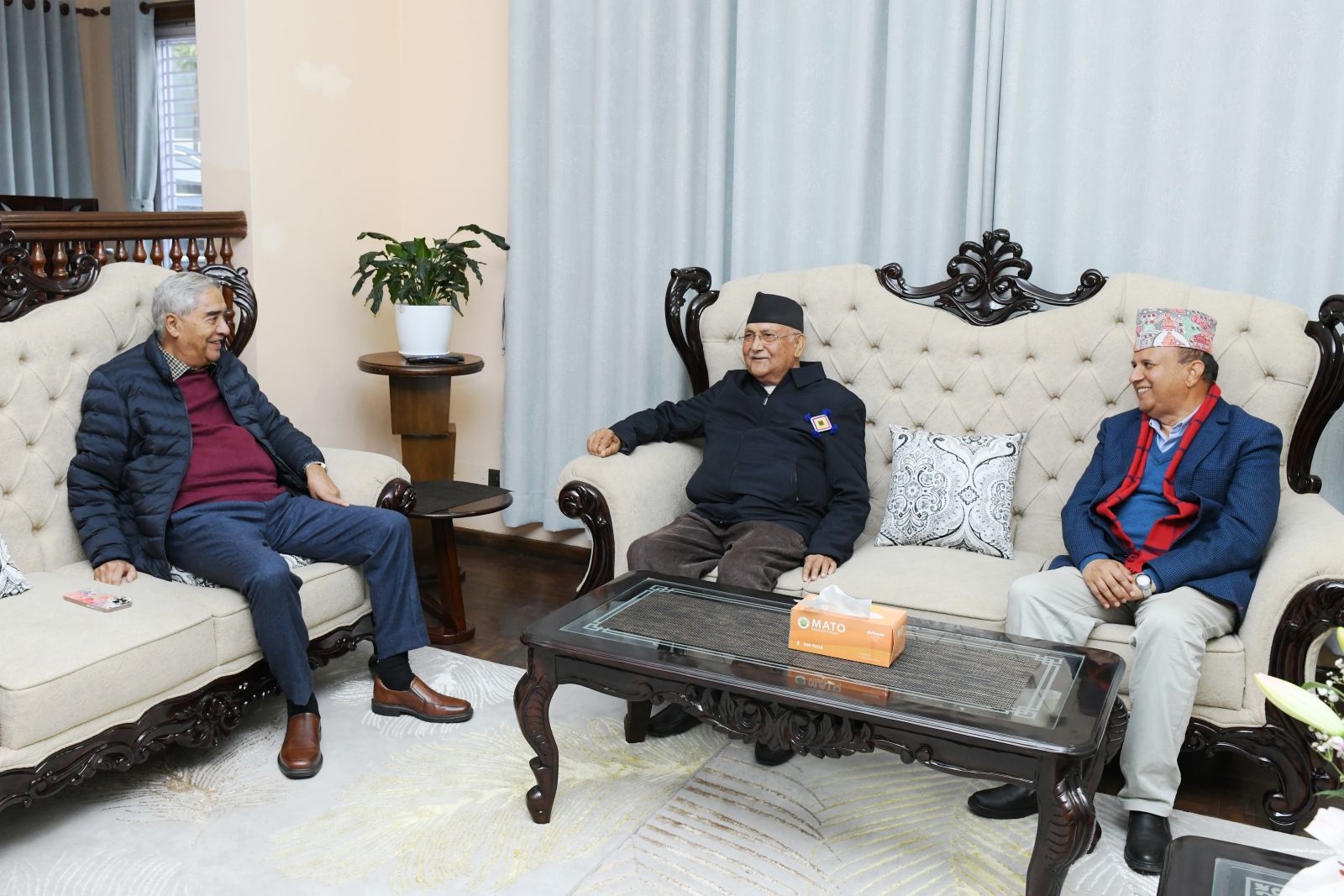 देउवालाई भेट्न ओली तथा नवनिर्वाचित एमाले महासचिव शंकर पोखरेल देउवा निवास महाराजगन्ज पुगेका छन् ।