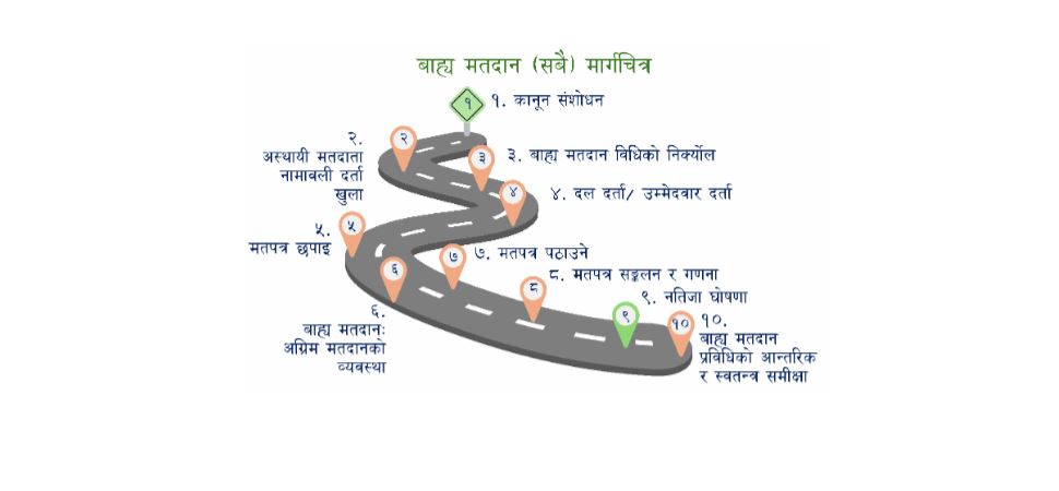 विदेशमा रहेका नेपालीहरूका लागि पहिलो चरणमा मौजुदा निर्वाचन कानुनहरूमा संशोधन गरी आयोगको वेबसाइटको क्षमता वृद्धि गरी गर्ने र अस्थायी सूचीकरणका लागि फिचर थप गर्ने र अस्थायी मतदाता नामावलीमा सूचीकरणका लागि सार्वजनिक आह्वान सकिने पनि अध्ययनले देखाएको छ।