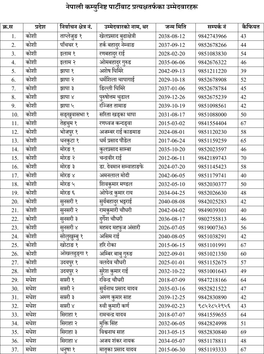 नेकपाका उम्मेदवार को कहाँबाट सूची हेर्नुहोस्