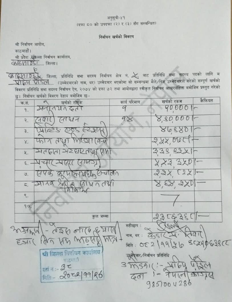 महामन्त्री पौडेलको चुनावी खर्च २३ लाख ८६ हजार ३६८